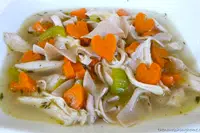 Then add shredded chicken and noodles of your choice, if using. Turn up heat a bit to bring soup to a gentle boil and cook until noodles reach desired consistency.
