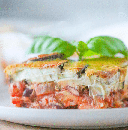 To assemble, layer a third of the eggplant slices in the base of a 20 x 20 cm baking dish. Top with half the filling, another third of the eggplant, the remaining filling, spinach, potato and remaining eggplant, then cover with the cheese sauce. Bake for 30 minutes until golden brown on top.