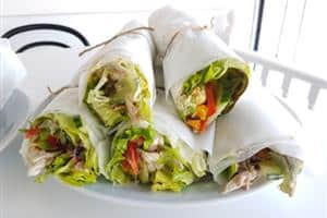 - Twist either end so your filling doesn’t fall out. Cut the wrap in half and serve.