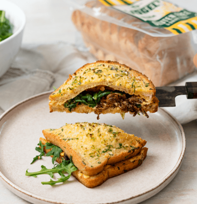 - Let them rest for 5 minutes. Open the toastie, add a handful of rocket, then close, slice, and serve.